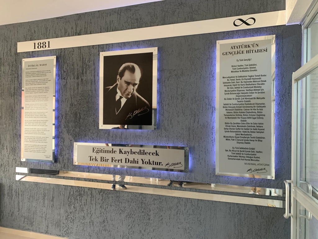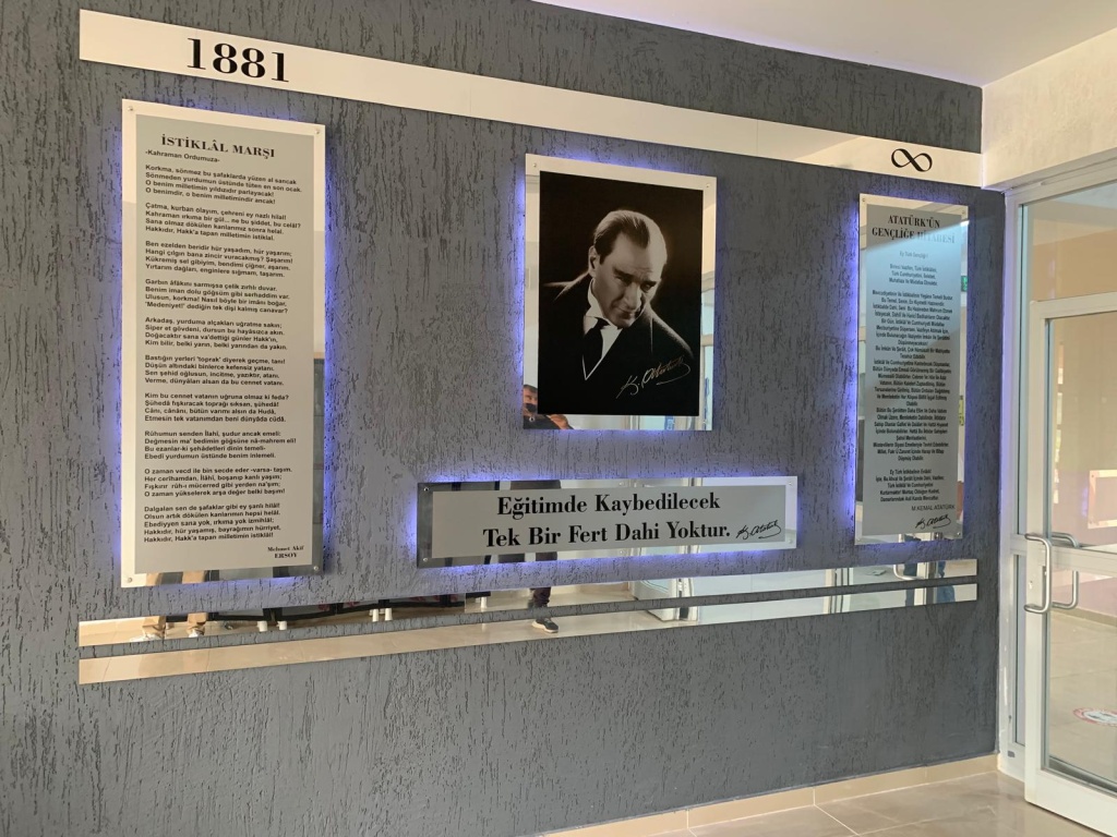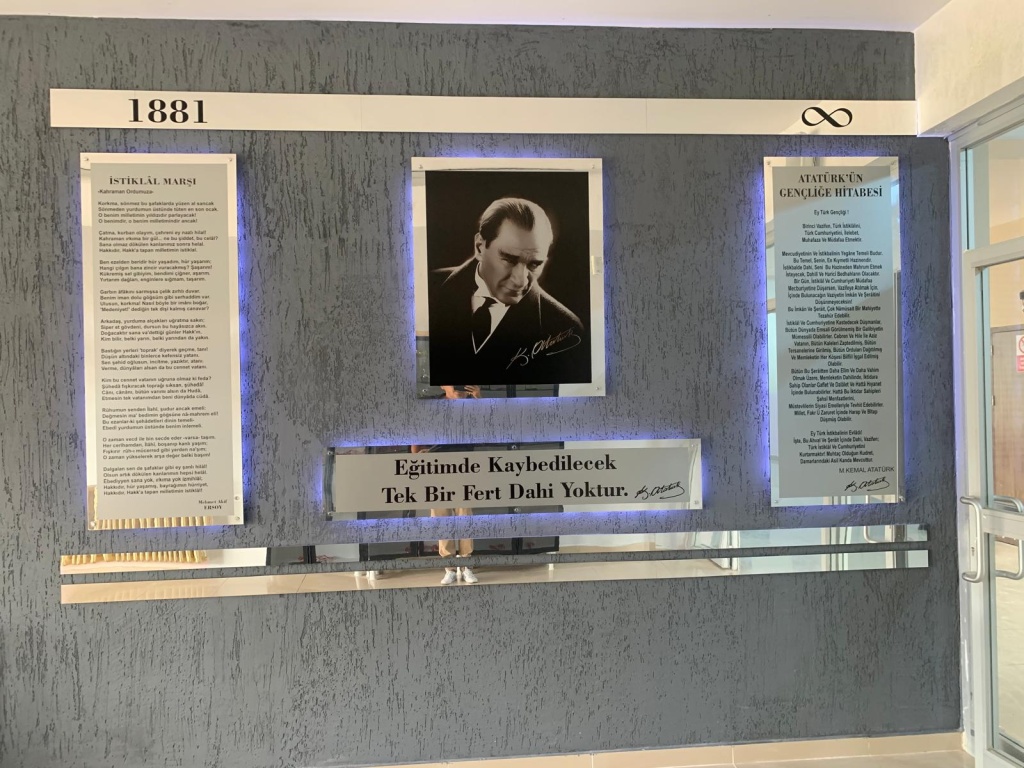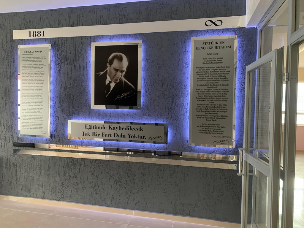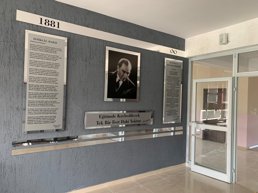 2024-2025 Eğitim Öğretim Yılı hazırlıkları kapsamında bitirilmesi planlanan okulumuz ana giriş koridoru iç dekorasyonu ve Atatürk köşesi çalışmamız tamamlandı.Okul Müdür yardımcımız Murat TURAN'ın planlamasını ve iç dekorasynunu kendisinin yaptığı çalışmalarda kendisine ve malzeme konusunda desteklerini eksik etmeyen okul müdürümüz Sinan BİLYAN'a teşekkür ederiz.